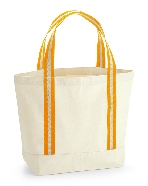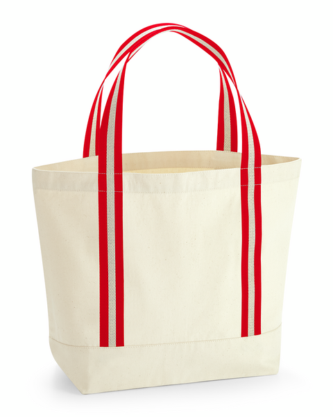 Le Sac de plage de Westford Mill est l'accessoire idéal pour vos journées ensoleillées. Confectionné en toile de coton biologique à 100%, il présente un tissu épais de qualité supérieure avec un grammage de 340 g/m². Ses poignées en toile de coton doux à rayures permettent un port confortable à la main ou à l'épaule. Avec une capacité de 19 litres, il est parfait pour transporter vos essentiels. Livraison sans contenu/décoration.