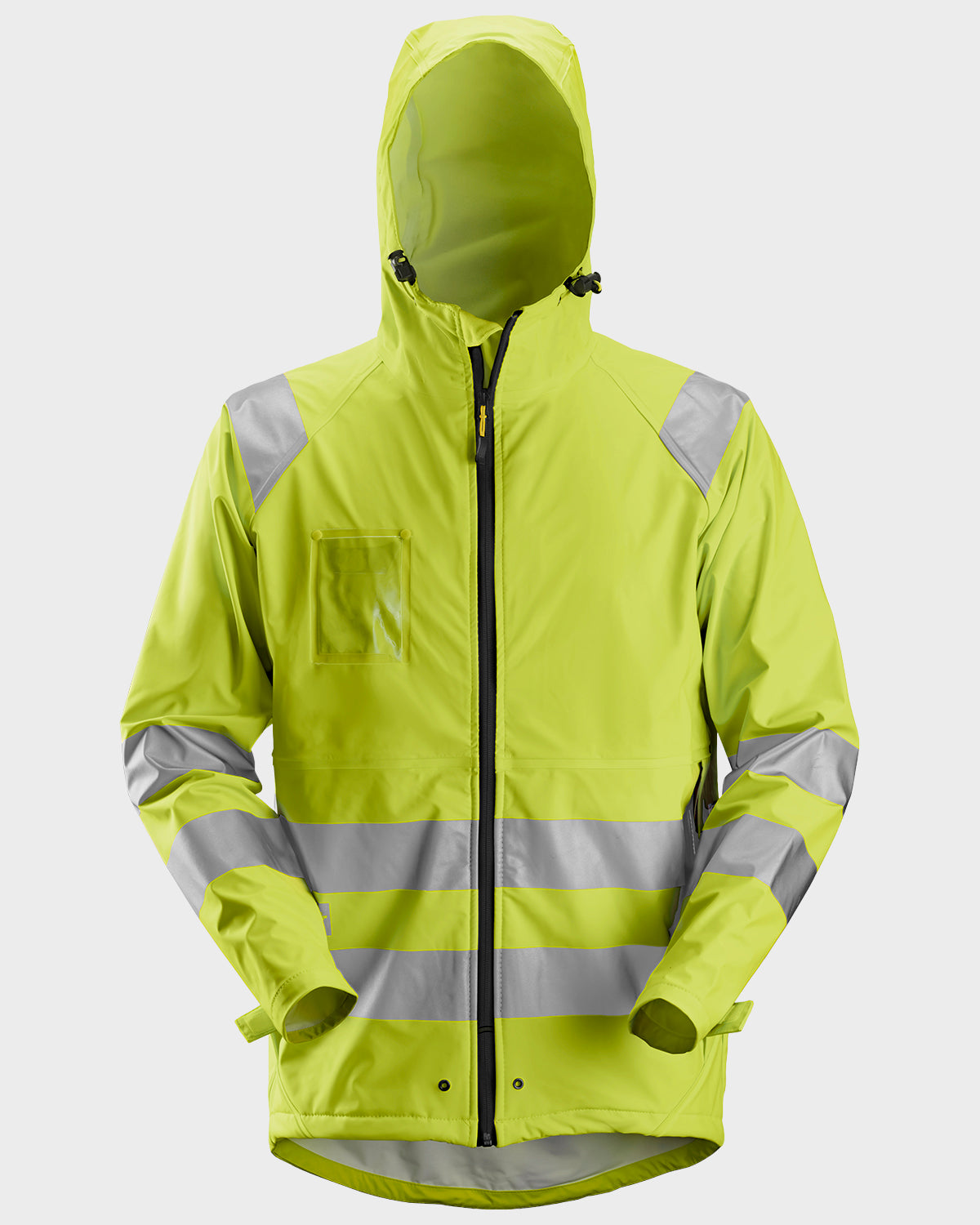 La Veste de pluie PU HV Classe 3 de Snickers Workwear est conçue pour offrir une protection optimale dans des conditions météorologiques difficiles. Fabriquée en polyester avec un grammage de 220 g/m², elle garantit durabilité et confort. Dotée de bandes réfléchissantes 3M et d'une technologie d'étanchéité conforme aux exigences professionnelles, cette veste imperméable dispose de coutures étanches, d'une capuche réglable, de poches fonctionnelles et de manches ajustables, assurant ainsi une ergonomie adaptée à un usage intensif.