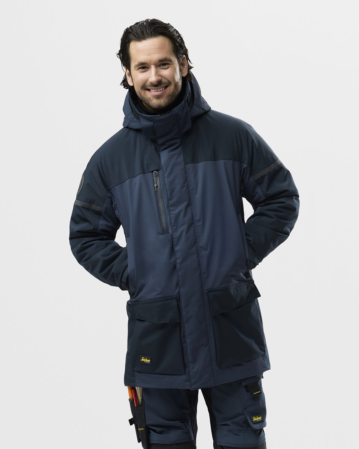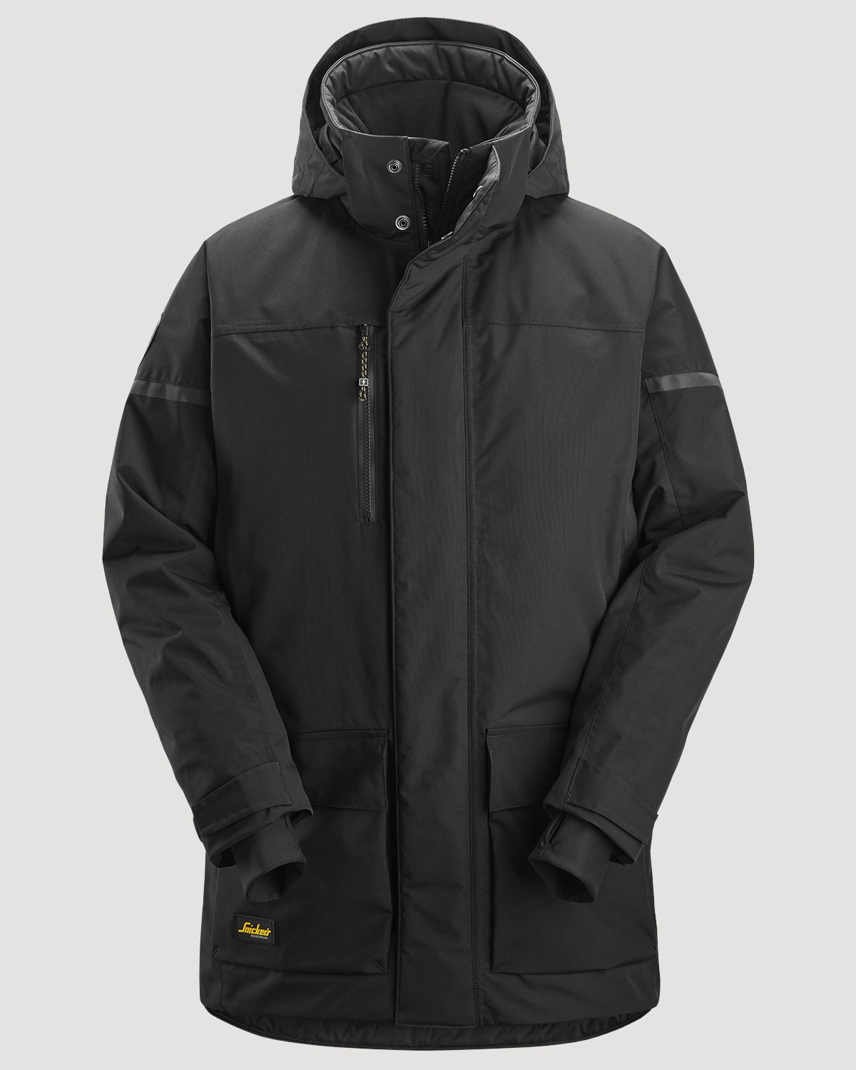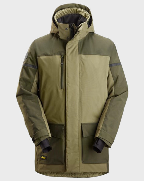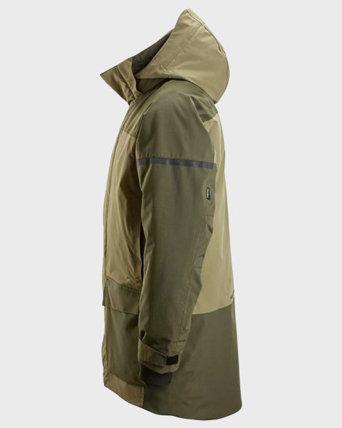 La Parka imperméable isolante AW de Snickers Workwear est conçue pour répondre aux exigences des professionnels. Fabriquée en polyamide recyclé avec un grammage de 175 g/m², elle offre une protection optimale contre le froid et la pluie grâce à ses renforts CORDURA® et sa finition déperlante. Ses nombreuses poches fonctionnelles garantissent une ergonomie et une praticité idéales pour un usage intensif, tout en étant conforme aux exigences professionnelles.